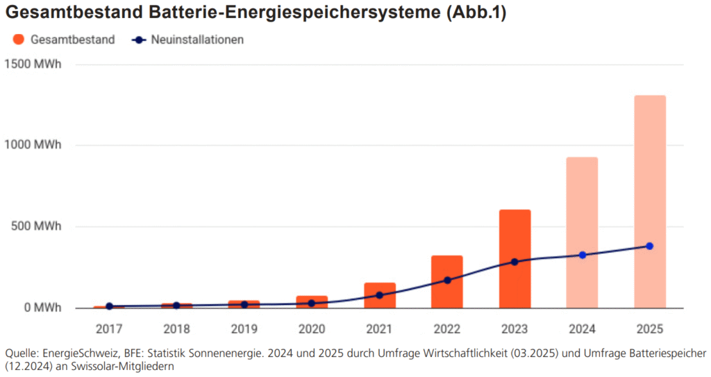 Auch in der Schweiz wächst der Markt rasant: Von 28,4 MWh im Jahr 2020 auf 276,5 MWh im Jahr 2023.